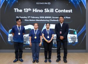 News お知らせホームニュース一覧Hino Mortors Manufacturing(Thailand)Ltd… Hino Mortors Manufacturing(Thailand)Ltd.様「第13回スキルコンテスト」で金賞を受賞【サイアムマブチ】 お知らせ 2026/02/27当社の海外グループ会社であるサイアムマブチの社員が、Hino Motors Manufacturing (Thailand) Ltd. 様主催の「第13回スキルコンテスト」において、パッキング Level C(作業者レベル)部門で、昨年の第12回に続き最高位である金賞を受賞いたしました。 左から2人目 一覧を見る